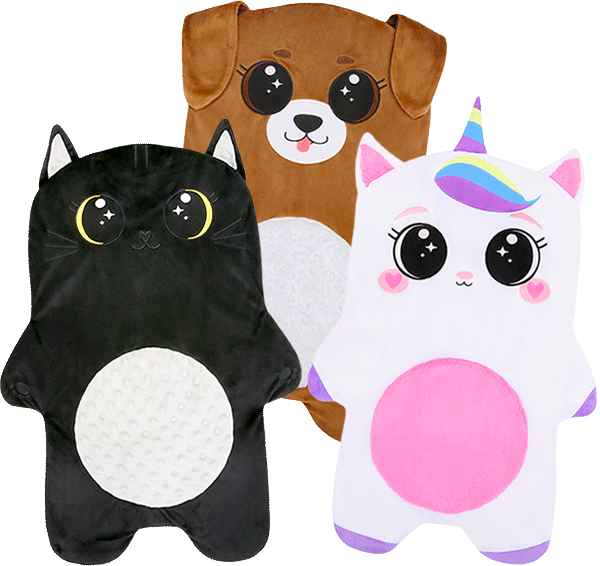 To achieve this, we developed our own fillable lap pad animals that can be customized to any weight up to 20lbs. This allows for greater adaptability as your children grow from 50lb kids to potentially 150lb+ young adults!